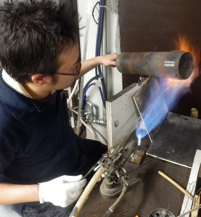 山口硝子製作所は大正14年の創業以来、 ガスバーナーによるガラス管の火炎加工と精密なスリ研磨加工を組み合わせた、ガラス職人による手作業のガラス加工に特化してきました。機械化できない手作業の技術にこだわり、手作業でしか実現できない形状のガラス製品を社会に供給し続けています。
